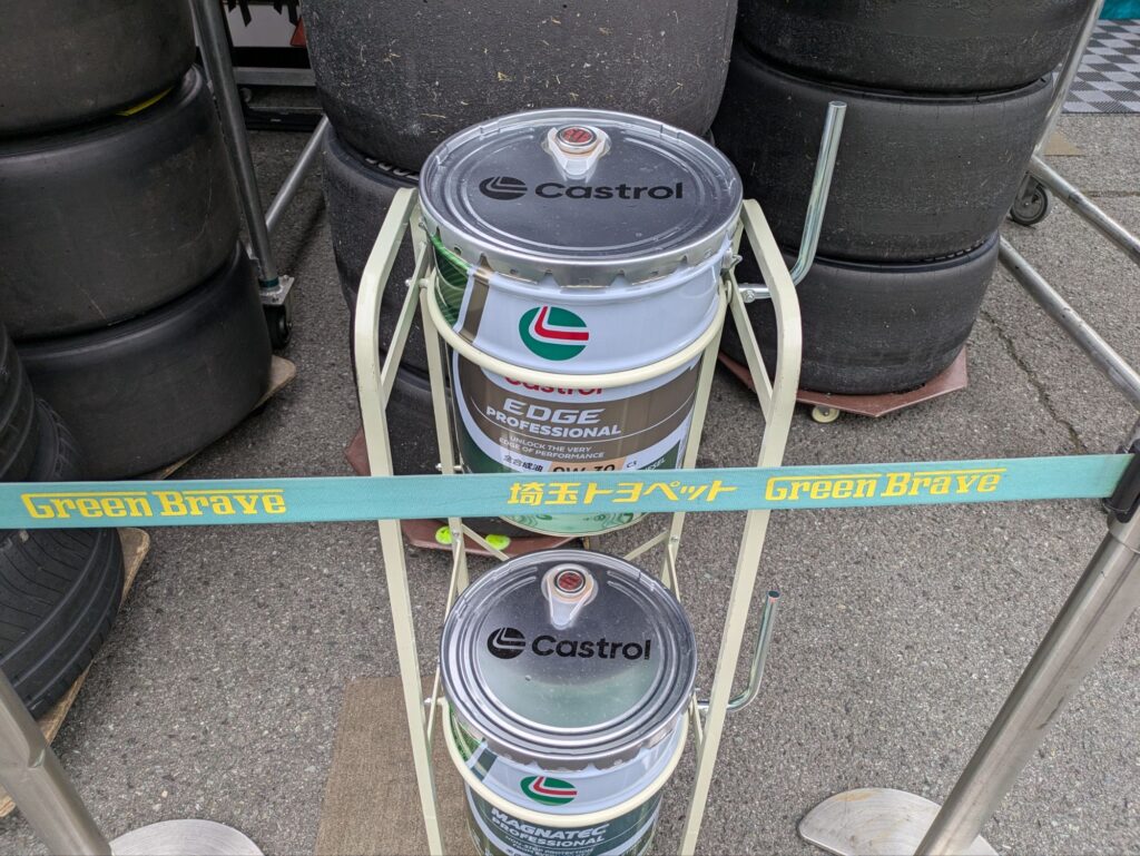 実際に使用しているわけではないと思いますが、カストロールのオイルを展示しているチームもいました。