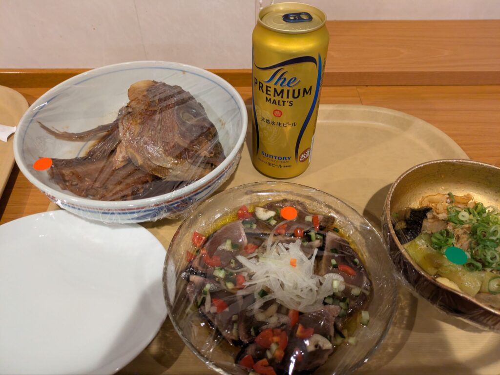 フェリー乗船してお風呂入って鯛の煮つけとビールで締めます。