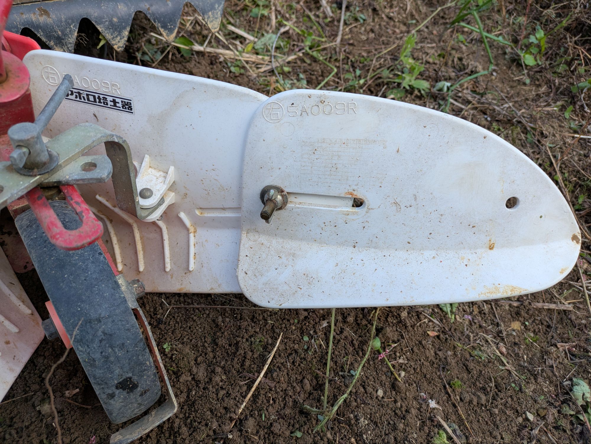 畝を作るにはアタッチメントをつけて耕うんした土が左右に分かれるようにします。