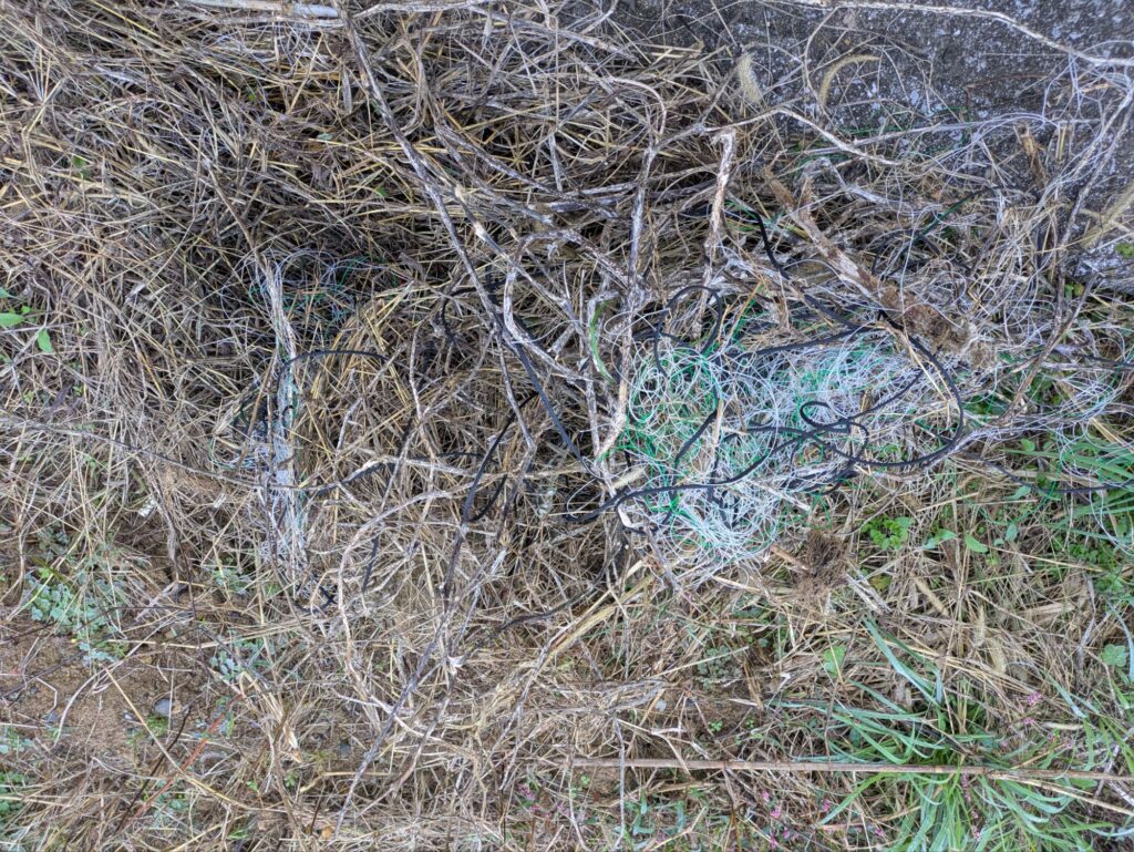 茎だけであれば乾かして畑に叩き込めば肥料になりますが、ネットは肥料にならないので今回は燃えるゴミで処分予定です。