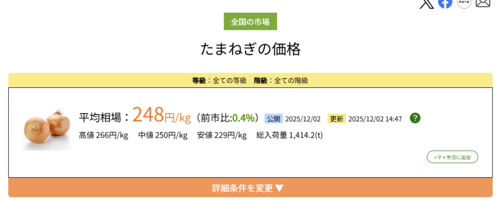 玉ねぎの小売価格は1kgで248円