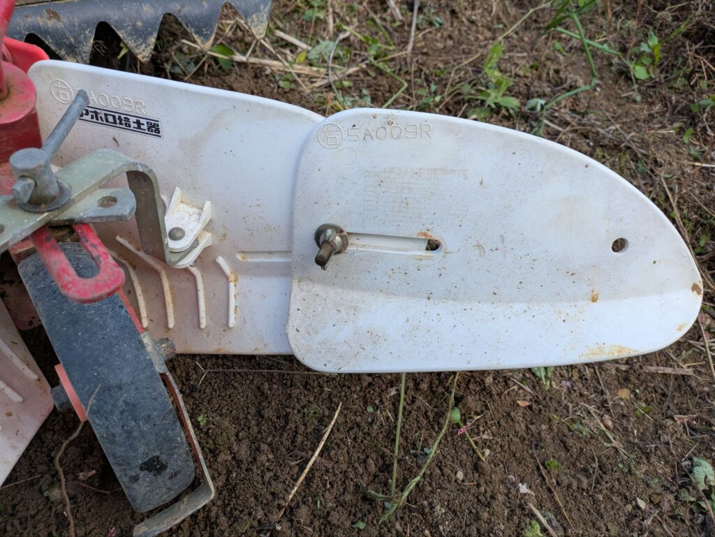 コチラの蝶ネジを使って畝の幅や深さを調整します。