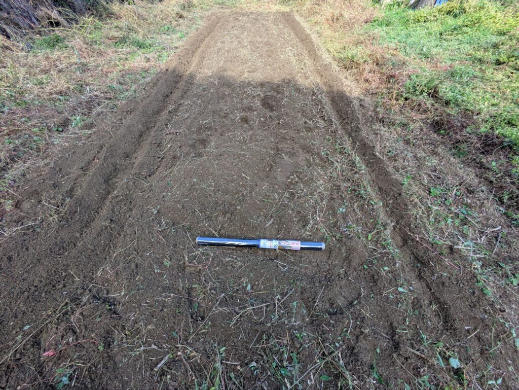 事前にマルチを置いて、どれくらいの幅の畝が必要か確認すると作業が楽になります。