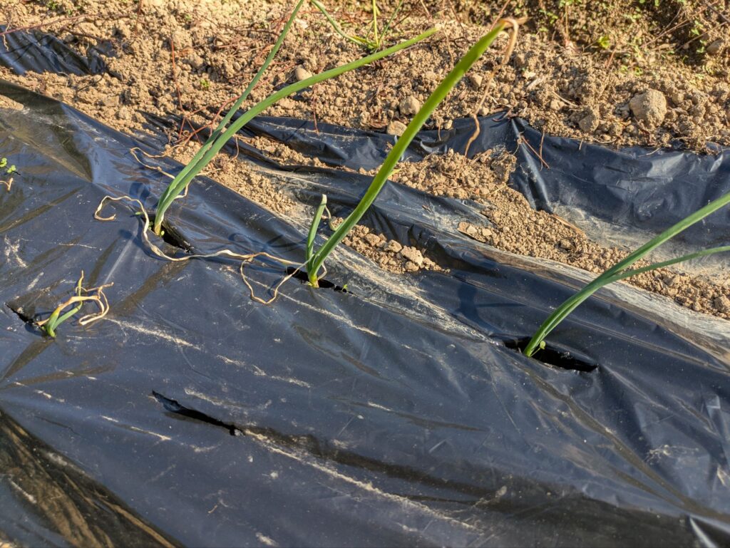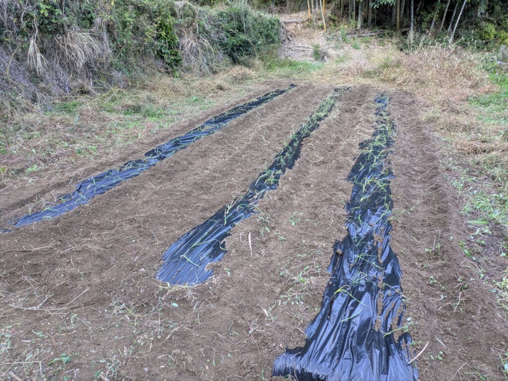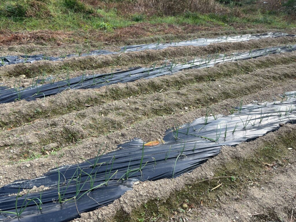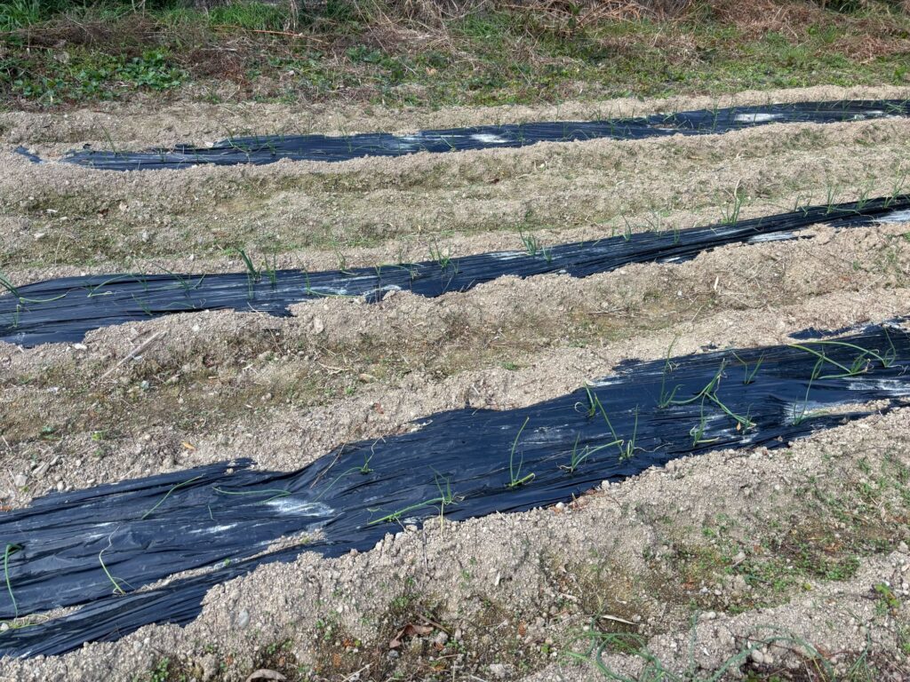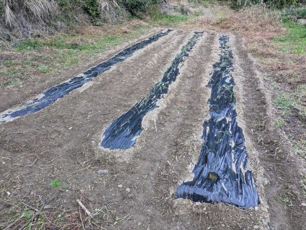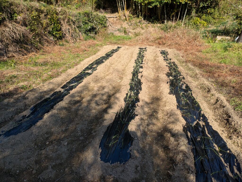 マルチを敷いて、玉ねぎを植えたところです。