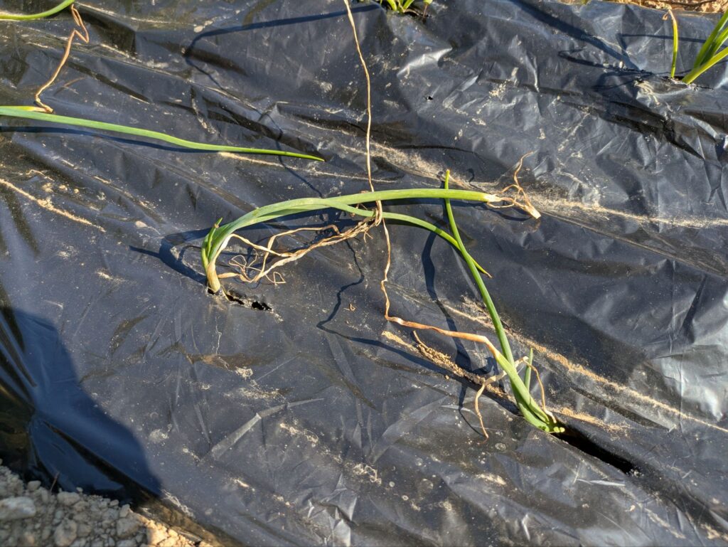 マルチが剝がれていないか心配して見に行きましたが、とりあえずはそのままになっているので問題なしです。