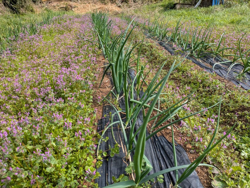 ホトケノザは奇麗ですが、玉ねぎの生育に良くなさそうだったので草刈りをしました。
