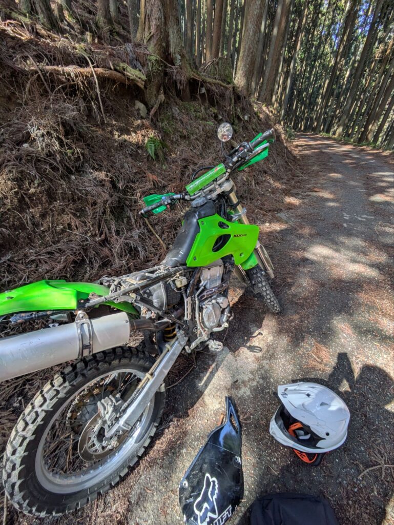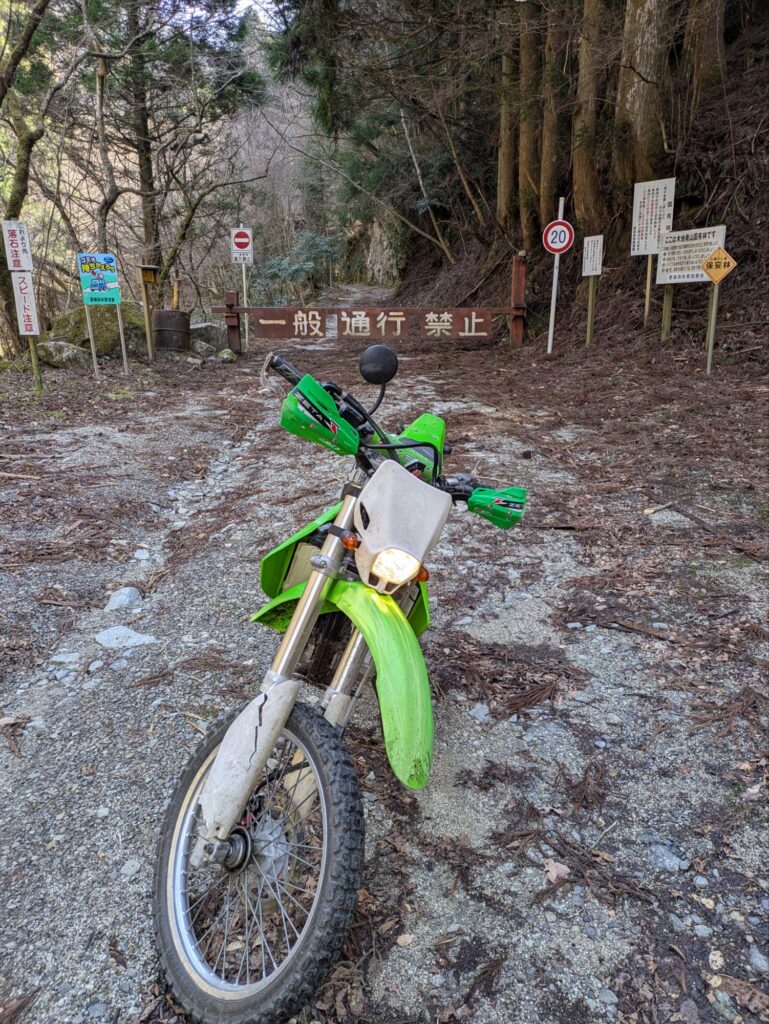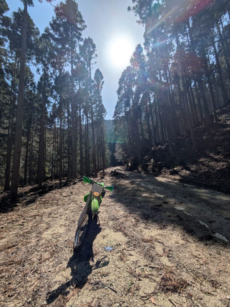 クラッチホースが根元から折れたのと、フロントフォークのスタビライザーが曲がってたので注文をし届くのを待っています。その間、トライアルの練習ができないのでKLX250を引っ張り出して林道ツーリングに行きました。今回はソロ林道ツーリングのレポートです。
