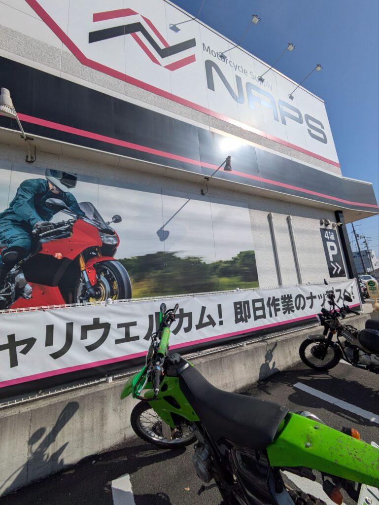 ナップス松山店に到着。松山のナップスはオフロード用品が充実してるので見に回るだけでも楽しいです。