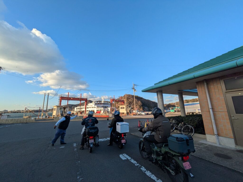 仕事が終わり、急いで荷物を積み込んでバイクを走らせ松山市にある三津浜港に行きます。