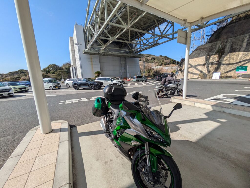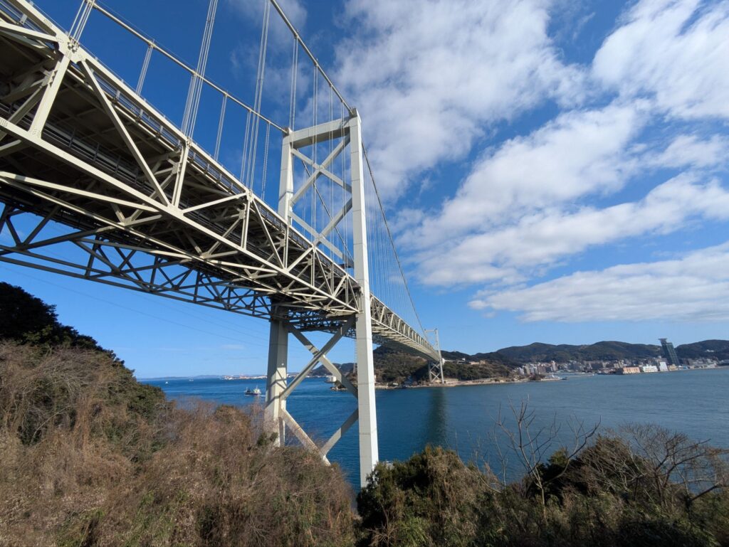そこから更に南下して下関の関門海峡まで来ました。関門海峡に来る頃には晴れ間も見えてツーリング日和になってます。