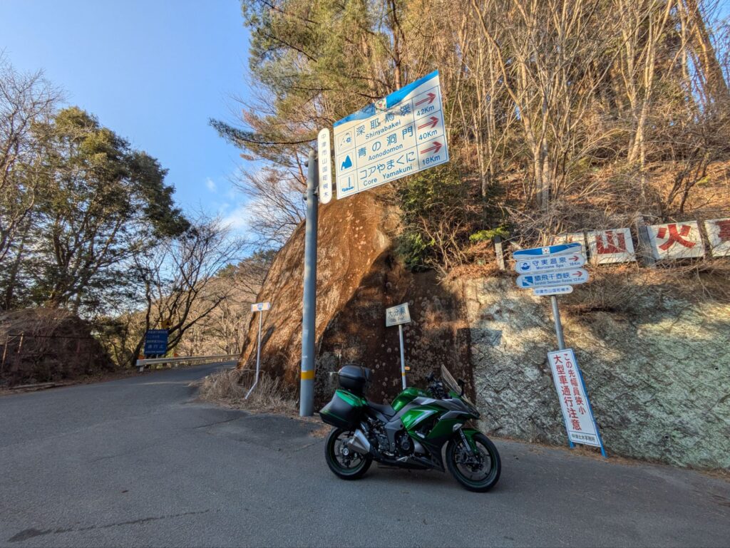 前回ブルーラインを制覇したので、今回は途中から山道に入りました。これがまた快走路で走りやすいです。途中の道の駅には温泉もあるので長期休みのツーリングだったら一休みにもいいスポットですね!