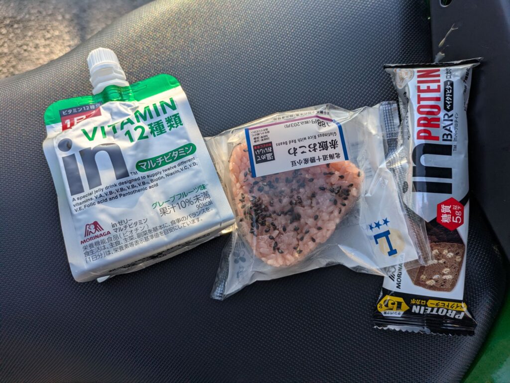 朝ごはんがコンビニごはん。一人の時はバイクで走るのが目的なのであまりごはんに注目しない(特に朝ご飯は)