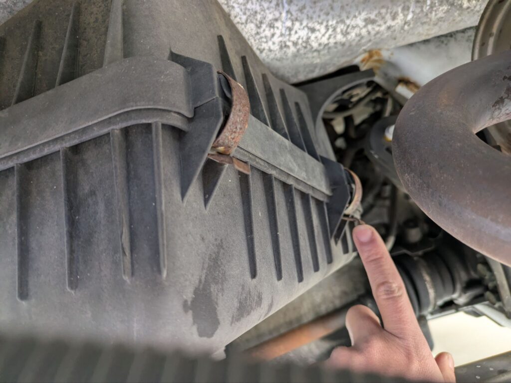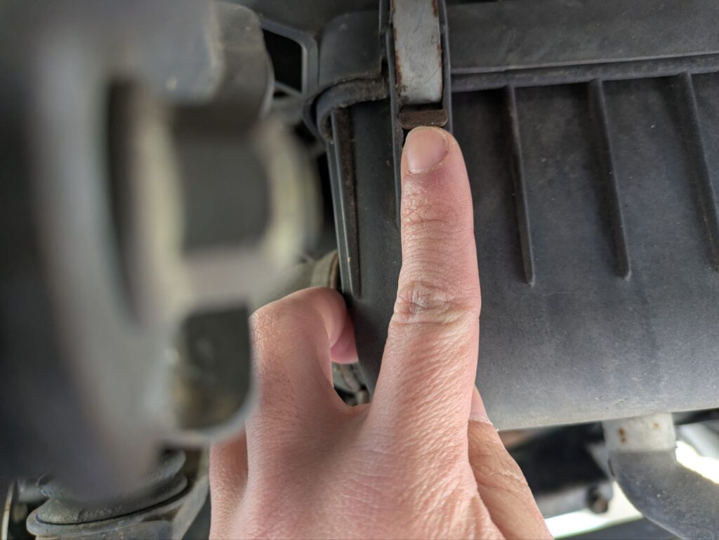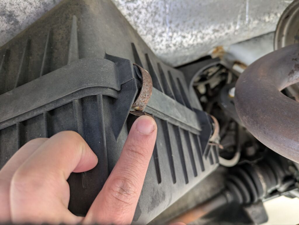 - エアクリーナーボックスの爪が固い場合はペンチを使う