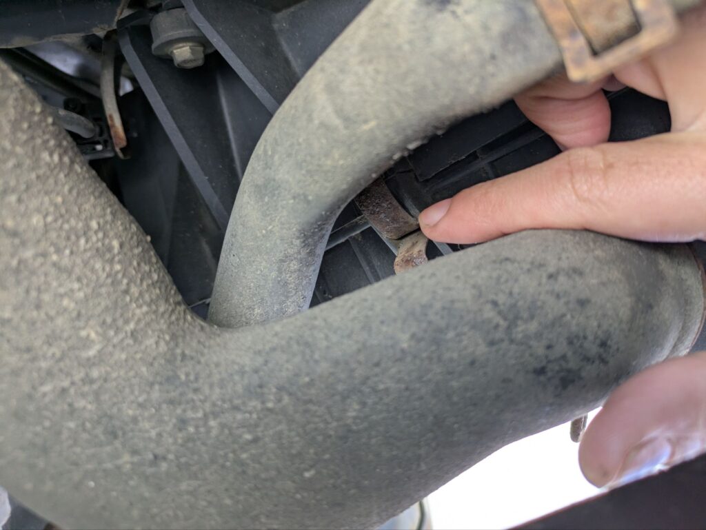 ホースなどがあり、手が入りにくい場所になっているのでペンチで外しました。