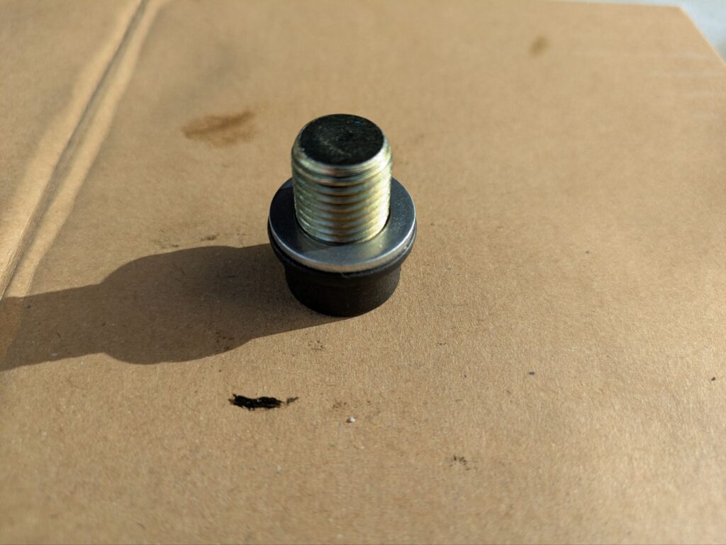 新しいドレンワッシャーをつけたところ。取り付け前にボルトに損傷が無いか確認しておきましょう。