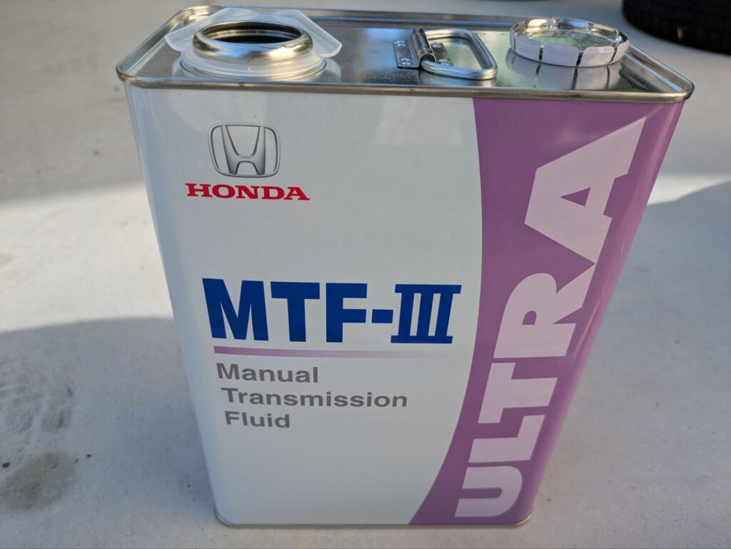 今回のミッションオイルはホンダ純正MTF-IIIを使用。エンジンオイルでも代用できるって情報もありますが、次の機会に使用かなと思います。