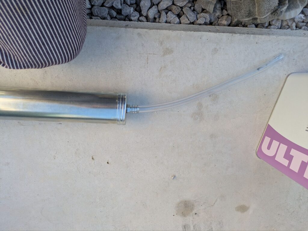 ここまではエンジンオイルの交換とほぼ一緒ですが、オイルを注ぐ際はオイルサクションガンを使います。