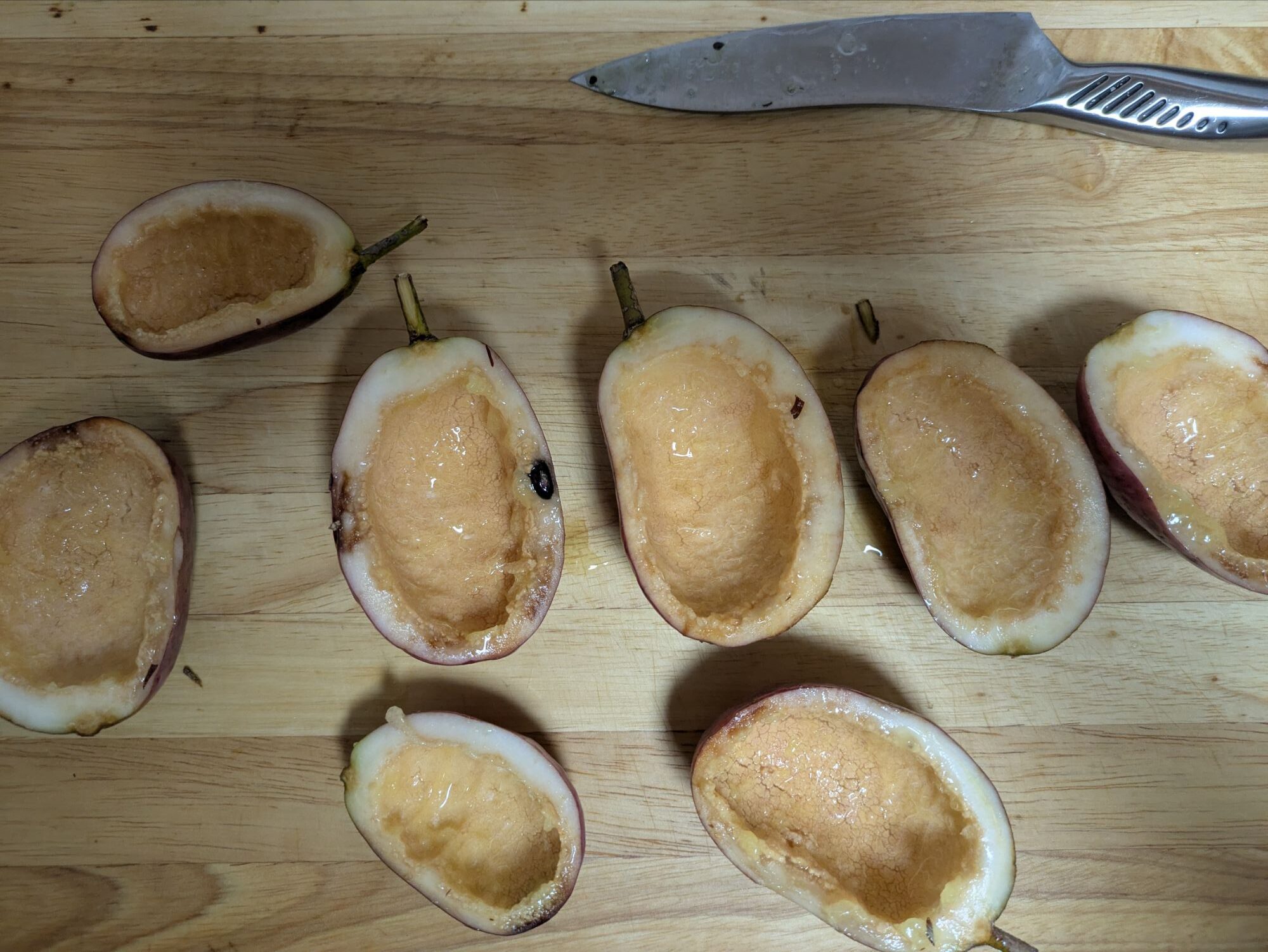 今回アケビの皮の料理をしましたが、アケビの中身を先に食べる必要があるので