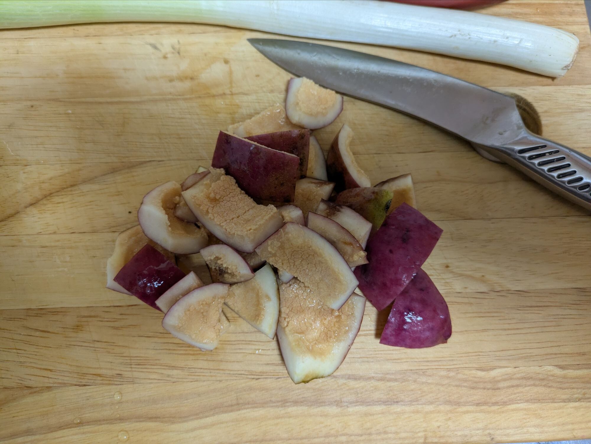 まずは炒められるようにアケビの皮を一口大に切ります。