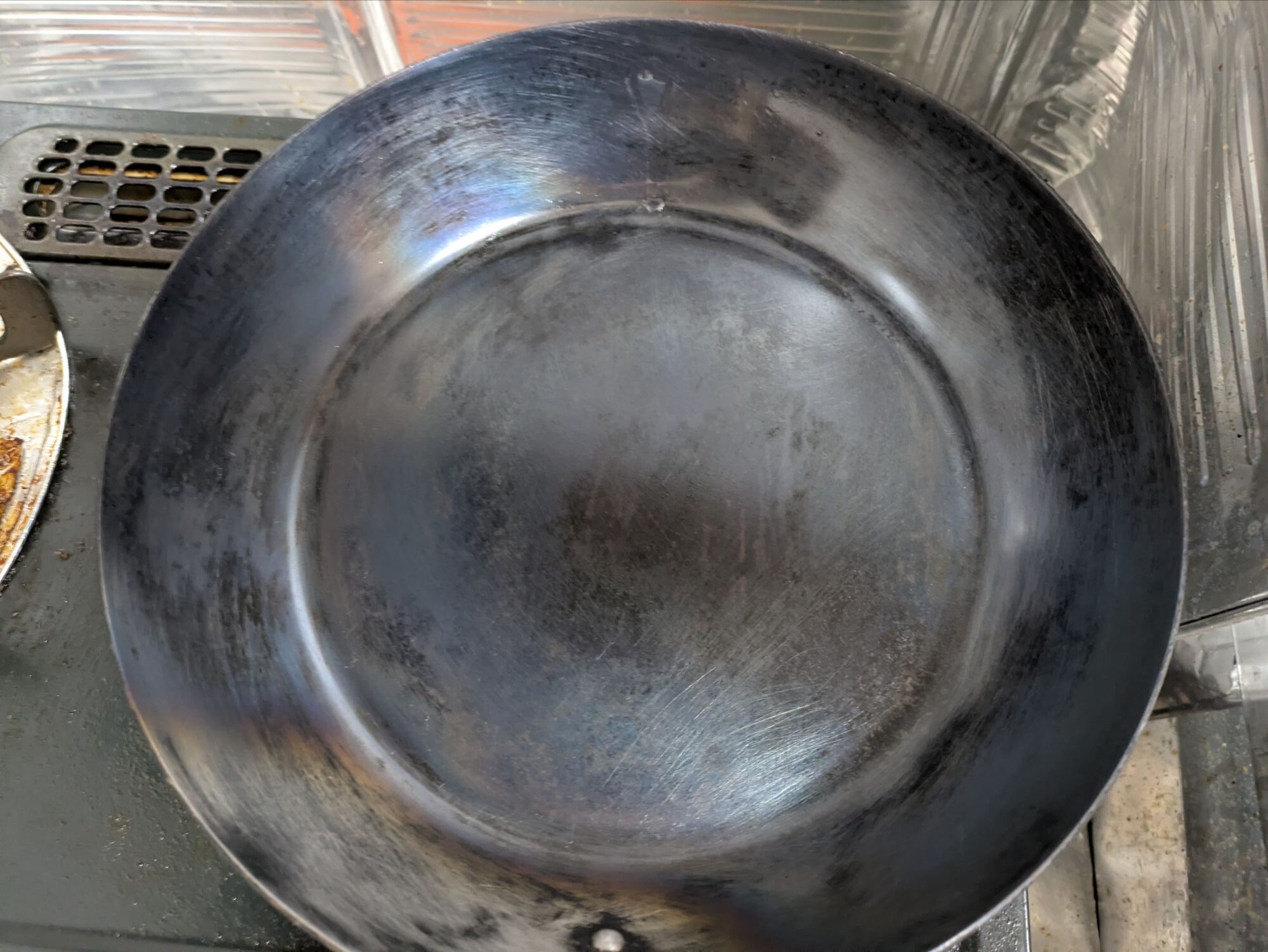 コチラは少し前に手入れをした鉄フライパン。本格的に使っていきます。