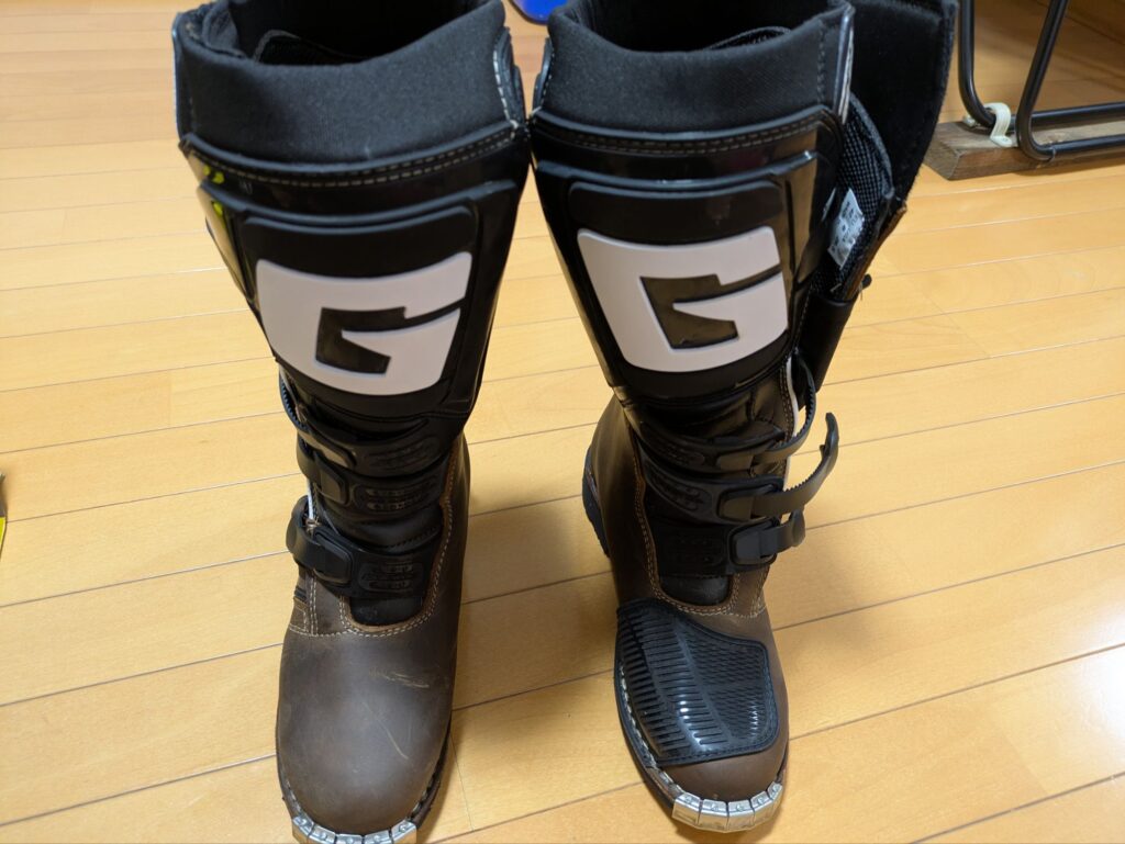 装備というとヘルメットやプロテクターからと思いがちですが、オフロードの場合モトクロスとエンデューロ、トライアルで使用するブーツの形状が違ってくるので、まずは下から揃えるというのが大前提です。