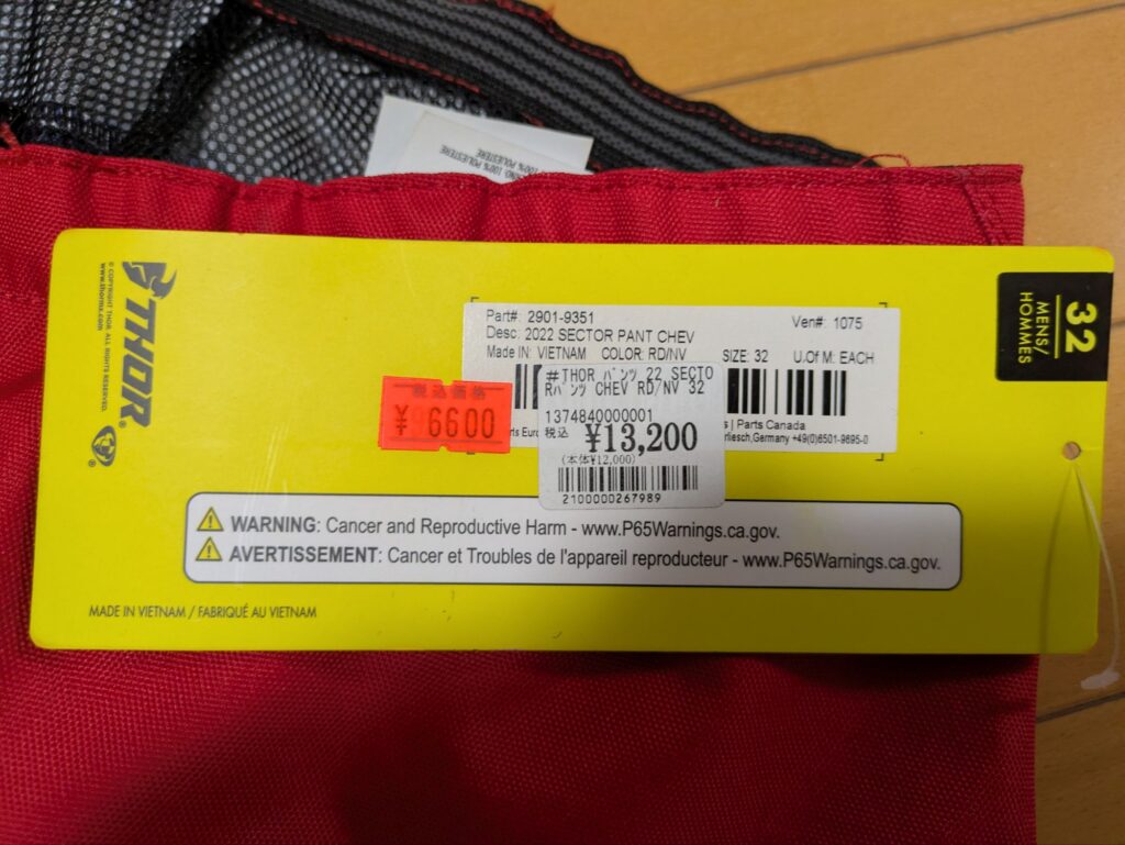 - パンツ:THORのパンツ(32インチ):6,600円