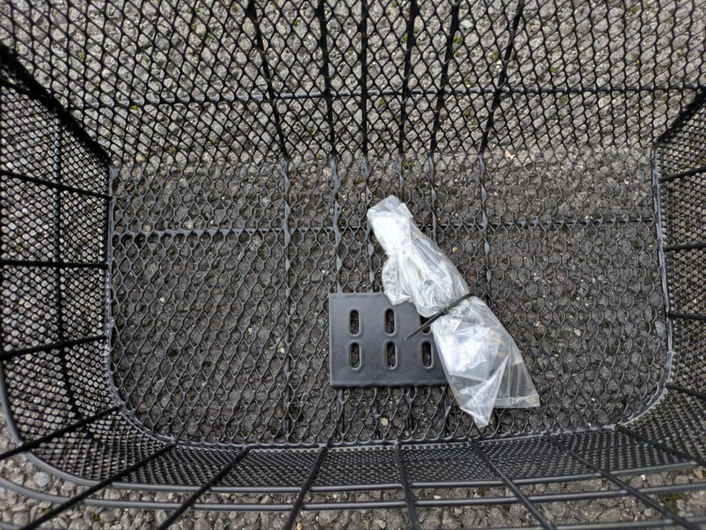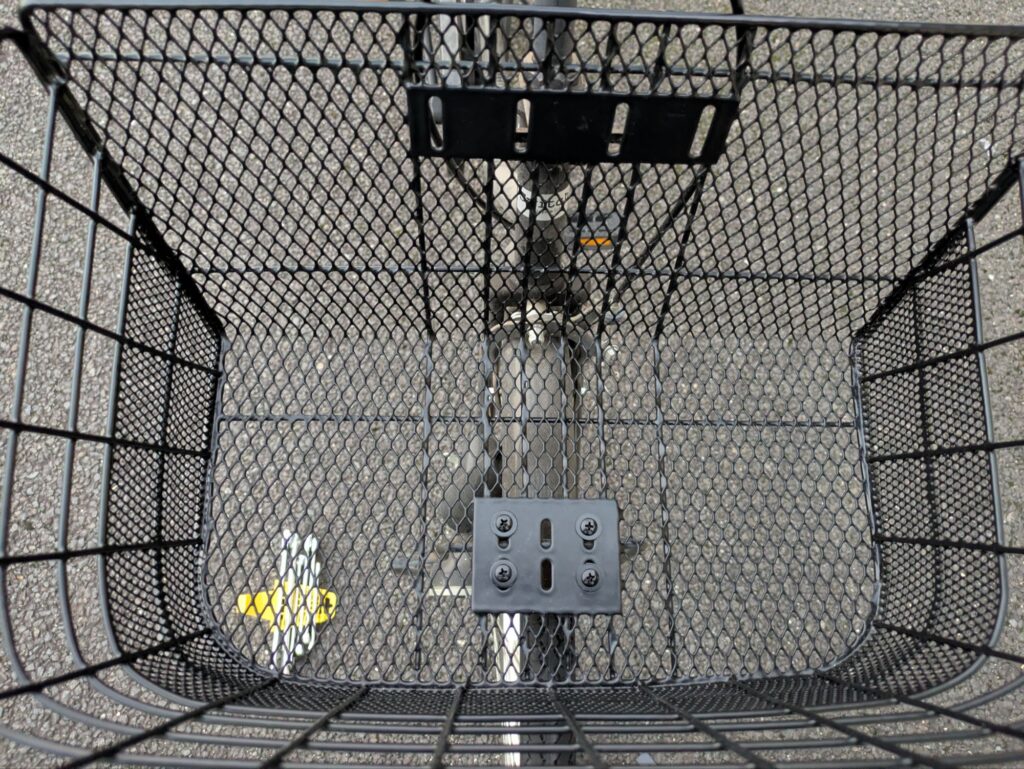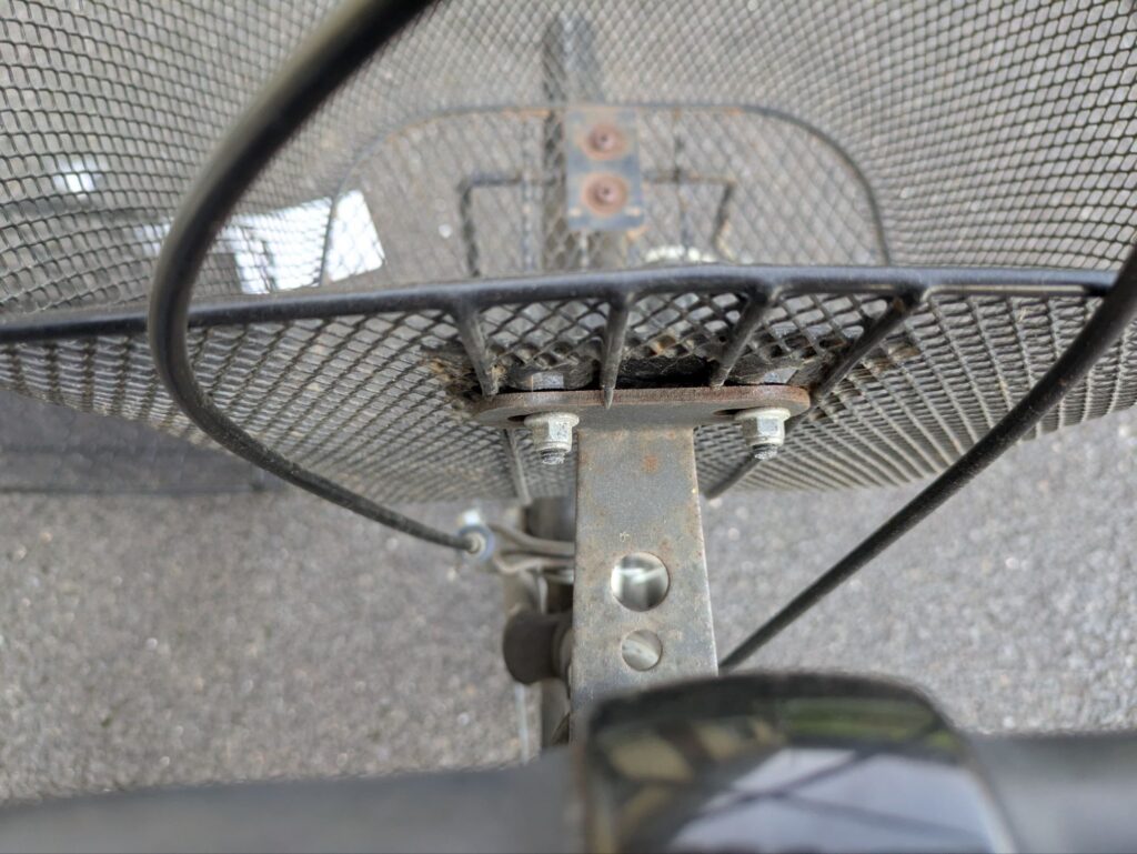 自転車の前かごの底にもプラスドライバーで外せるネジがあるので外します。