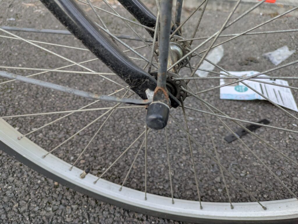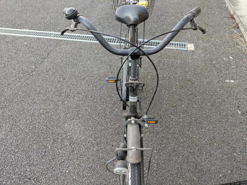 前かごを外したママチャリ、スッキリしてちょっとカッコよくなっています。