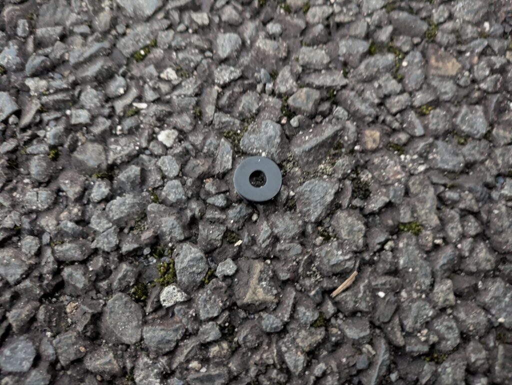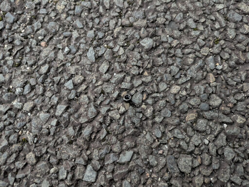 特に夕暮れに作業をしたため、アスファルトの黒色とナットの黒色が同化して探すのに苦労します。