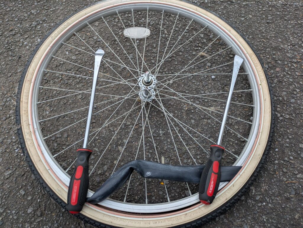 なので早速手持ちの工具でパンク修理(タイヤチューブ交換)してみました。