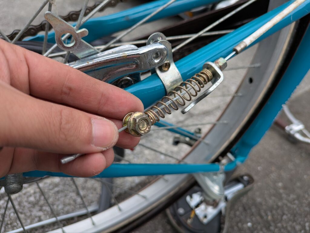 まずブレーキワイヤーを繋いでいるナットを外します。