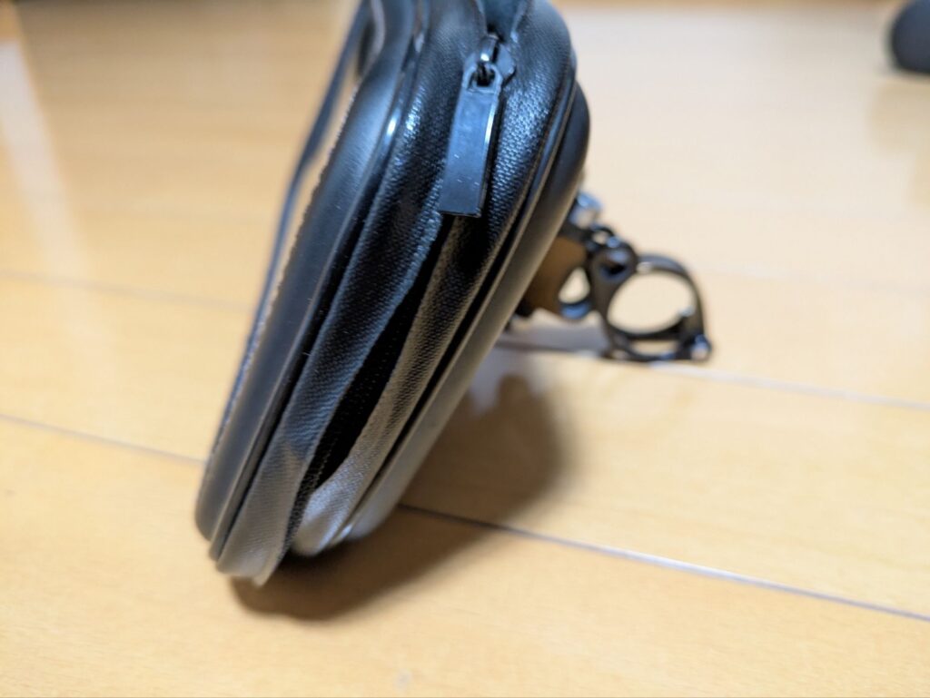 スマホホルダーの一番の役割はスマホを落とさないこと。スマホホルダーが出始めたころはスマホが出始めた時期でもあったため、「スマホが落ちた」というレビューをよく見かけました。しかし今ではどのようにしたらスマホが落ちないか、ホルダーとバンドで2重にするなど工夫が見られスマホ落下についてはよほどのことが無い限り大丈夫だと思います。その中でリジットタイプはがっちりスマホを固定する。そしてバンドでクランプが緩くなってもスマホが落ちないようにする。という作りが多く、スマホを落とさない工夫がされています。一方でクイックタイプはスマホを入れてファスナーを閉めるだけ、という簡単な機構ですがファスナーがあまり強くなく数カ月使ってくると徐々にファスナーが緩んできたりします。今回の私のスマホホルダーは4年持っているのでかなり持ちがいい方ですが、頻繁に開け閉めする方は注意です。