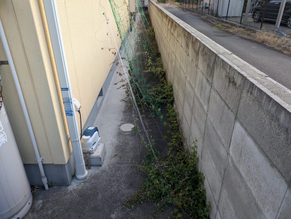 手入れして分かってきたのですが、ネットだと雑草を取るのに絡んで大変なのでフェンスなどを張った方がいいかもしれません。