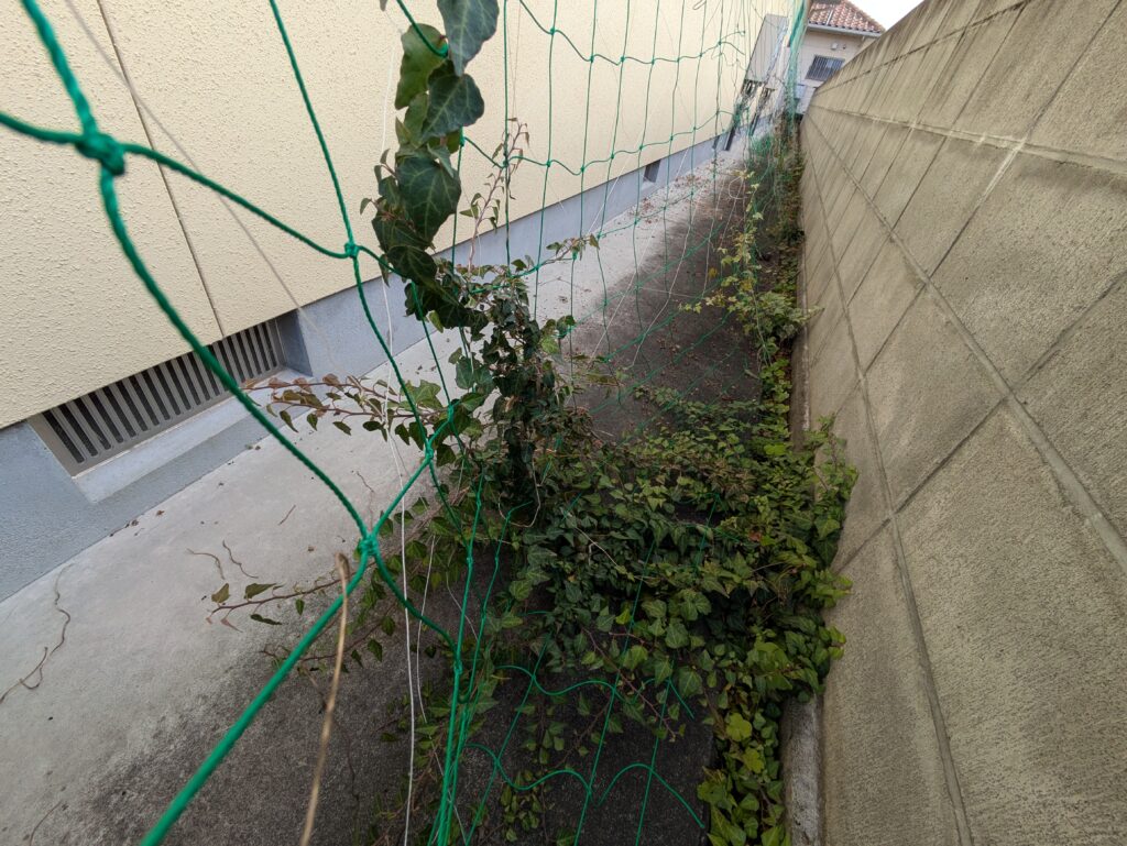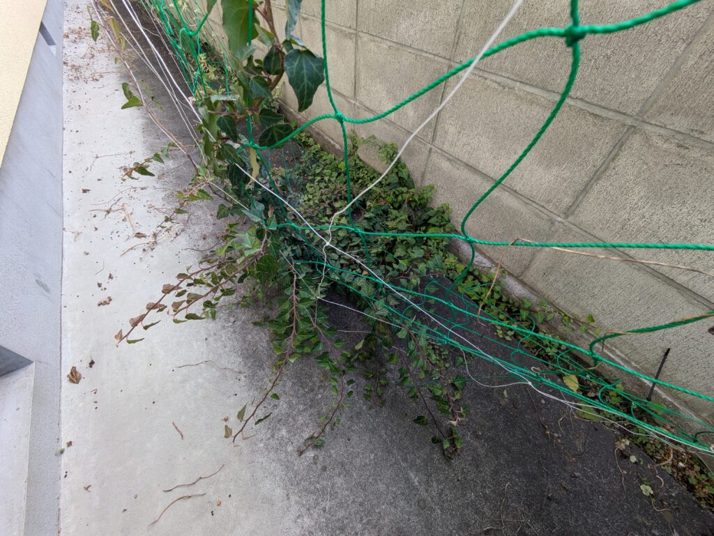 一番手前に映っているアイビーは去年植えたのですが、その付近までネットが足りなかったので