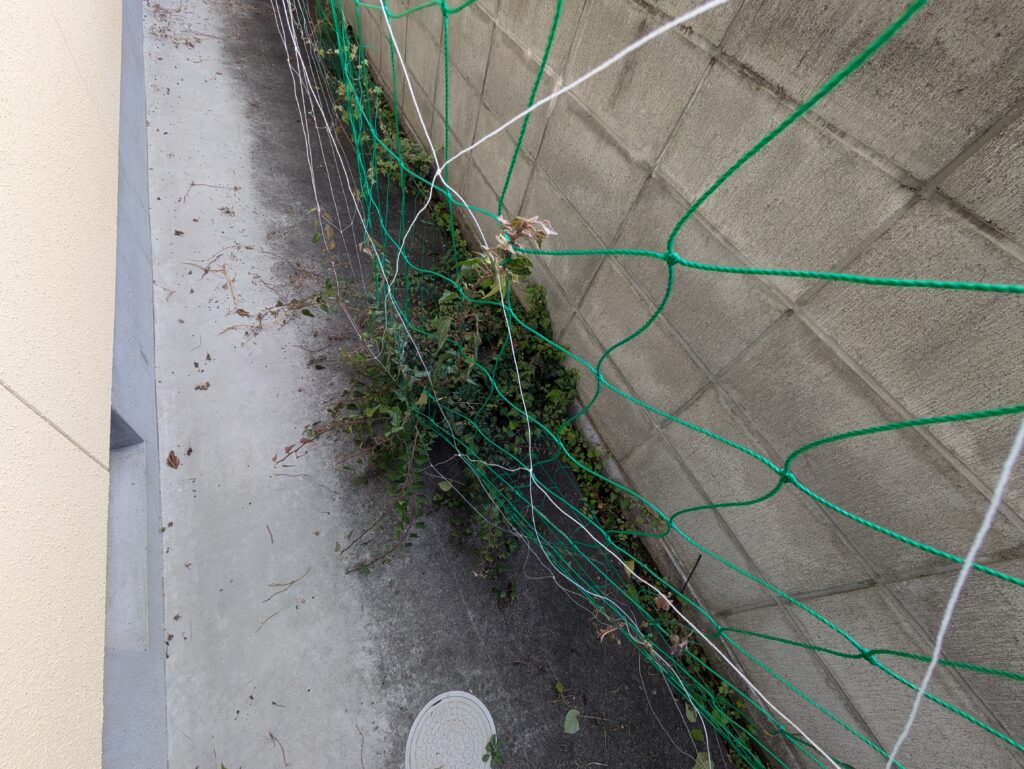 またネットが18mと花壇の長さに比べて2倍ほど長いため最後はまとめて垂らしている状態です。