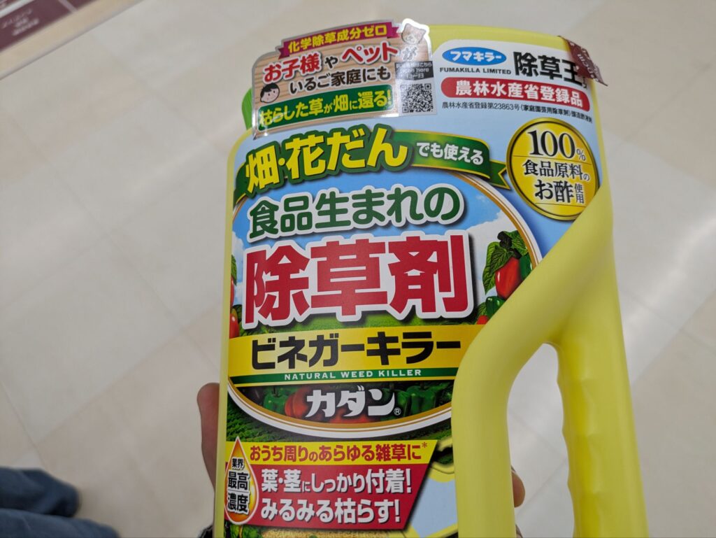 そんな折に土建屋さんから「野菜にも撒ける優しい除草剤を撒くだけでも違うよ」とアドバイスを貰ったので撒いてみました。