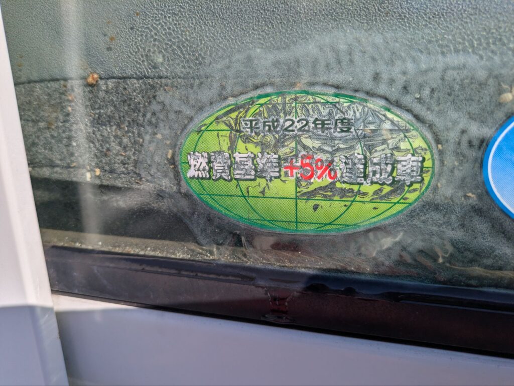 まずは窓ガラスについている燃費基準のステッカーから見ていきます。