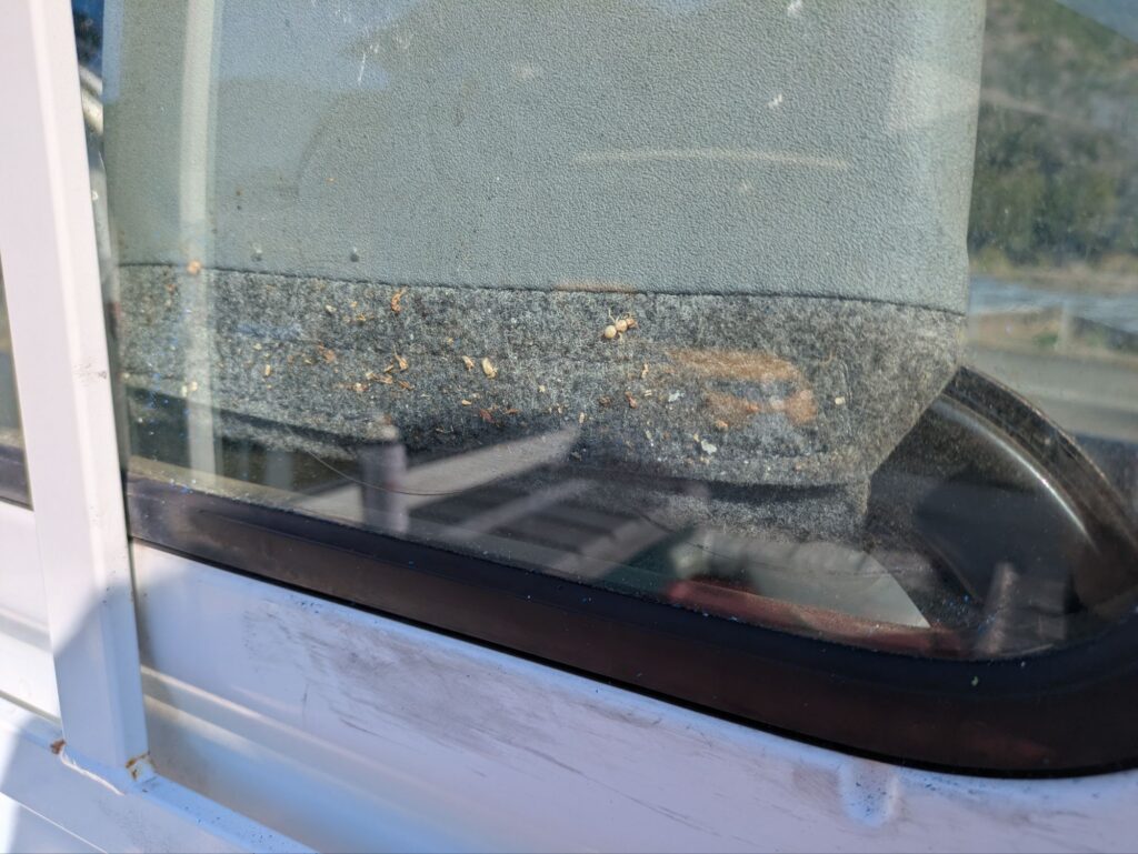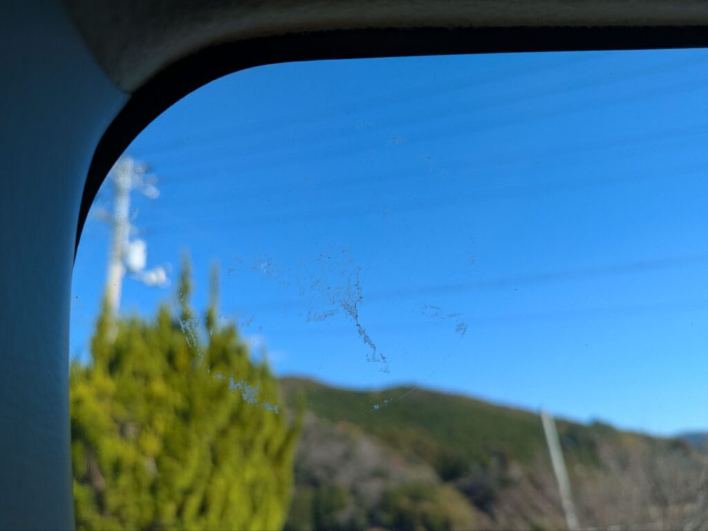 もう一つはフロントガラス内側についていたステッカーの糊後です。
