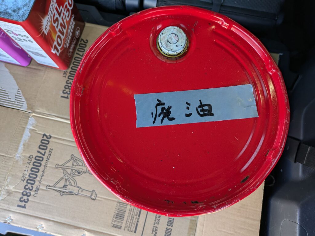 私は廃油を空きペール缶に集めて知り合いの自動車屋さんに持っていきますので用意していませんが、特殊なケースだと思いますので廃油処理箱の用意は必要です。 - 段ボール