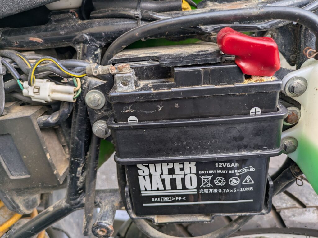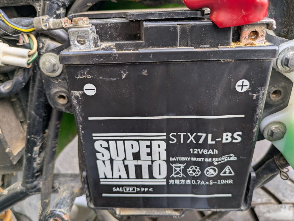 (バッテリーは悪名高いSUPER NATTO。安いけど1シーズンでバッテリー上がったりすると噂の…)