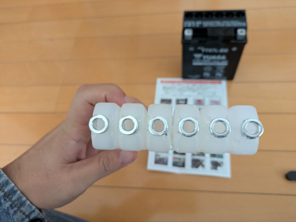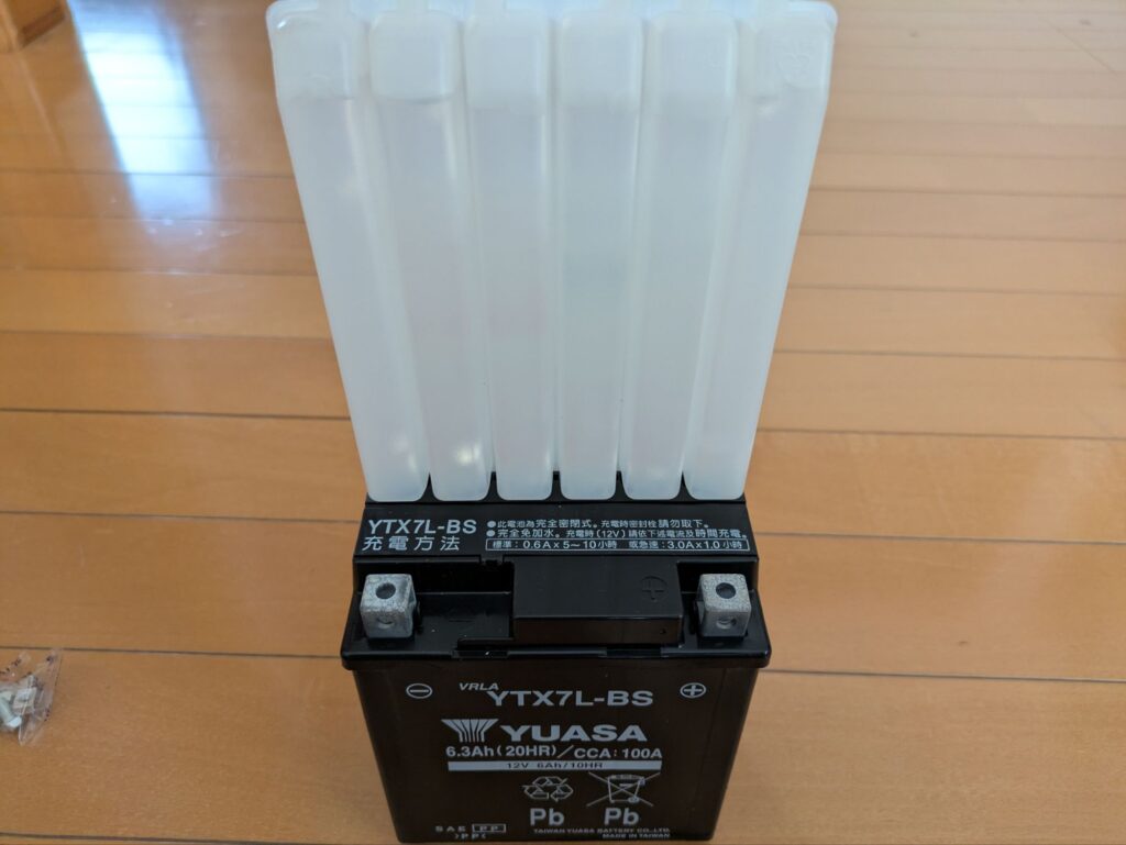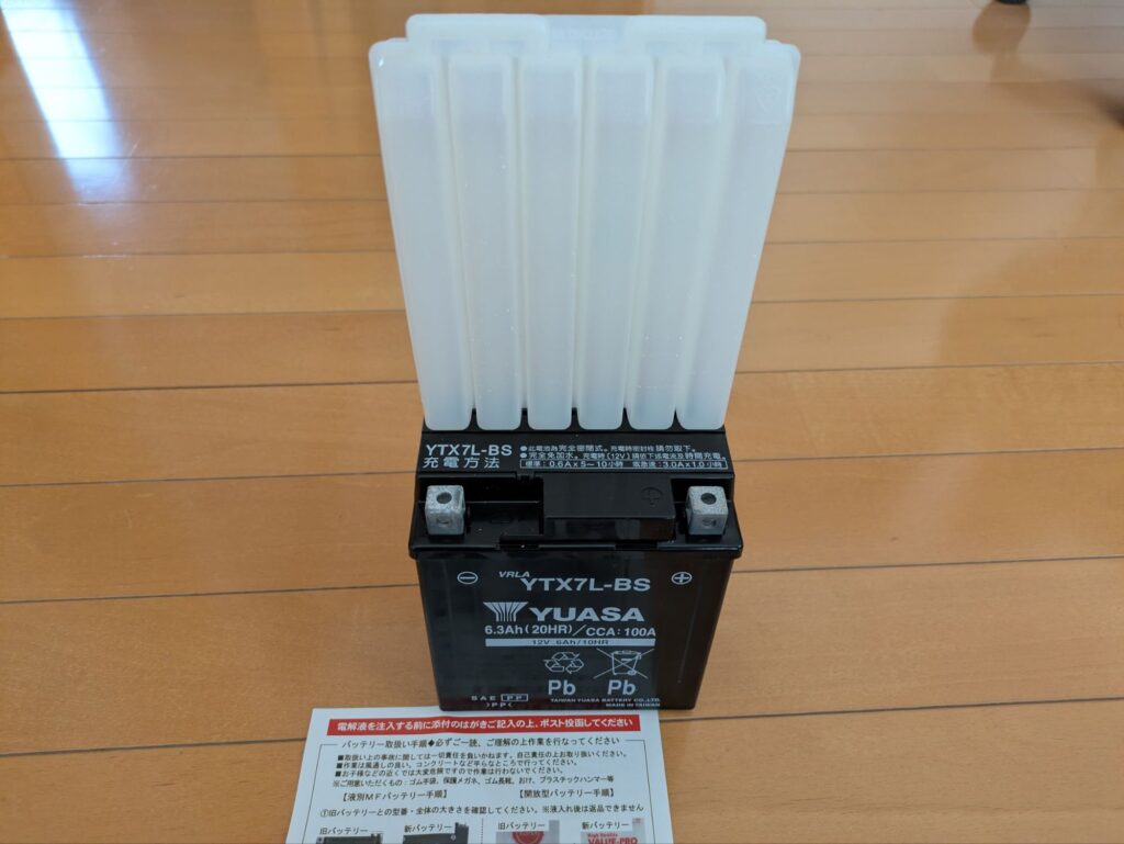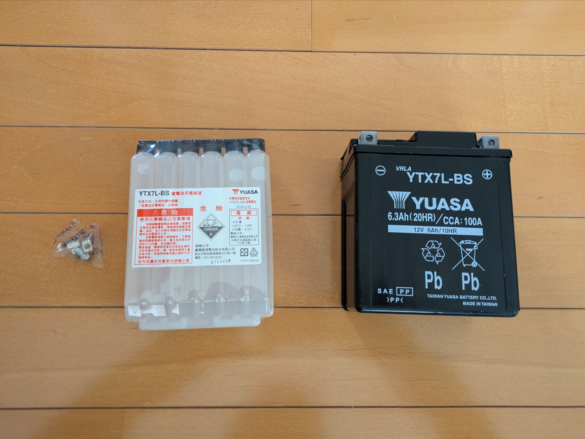 今回はGSユアサYTX7L-BSを使用 - 8mmのメガネレンチorスパナ