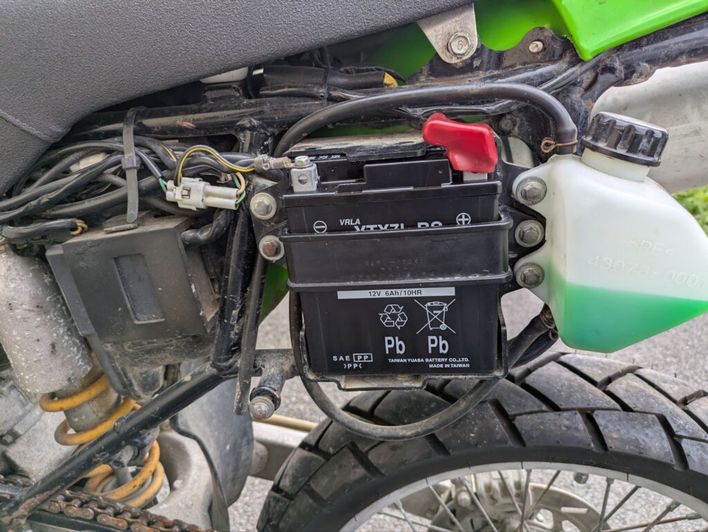 最近オフロードを走りたくなったので納屋に眠らせていたカワサキ・KLX250を動かせるようバッテリー交換をしました。