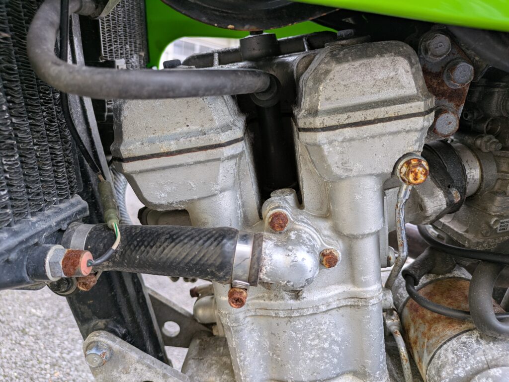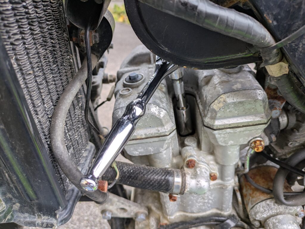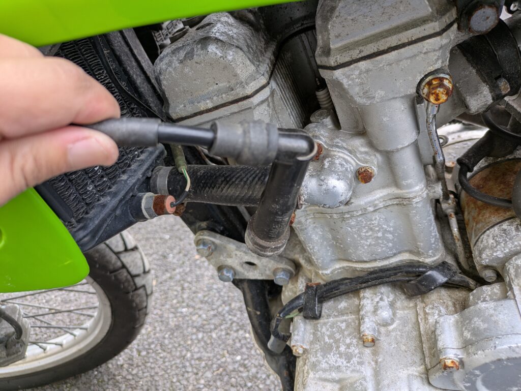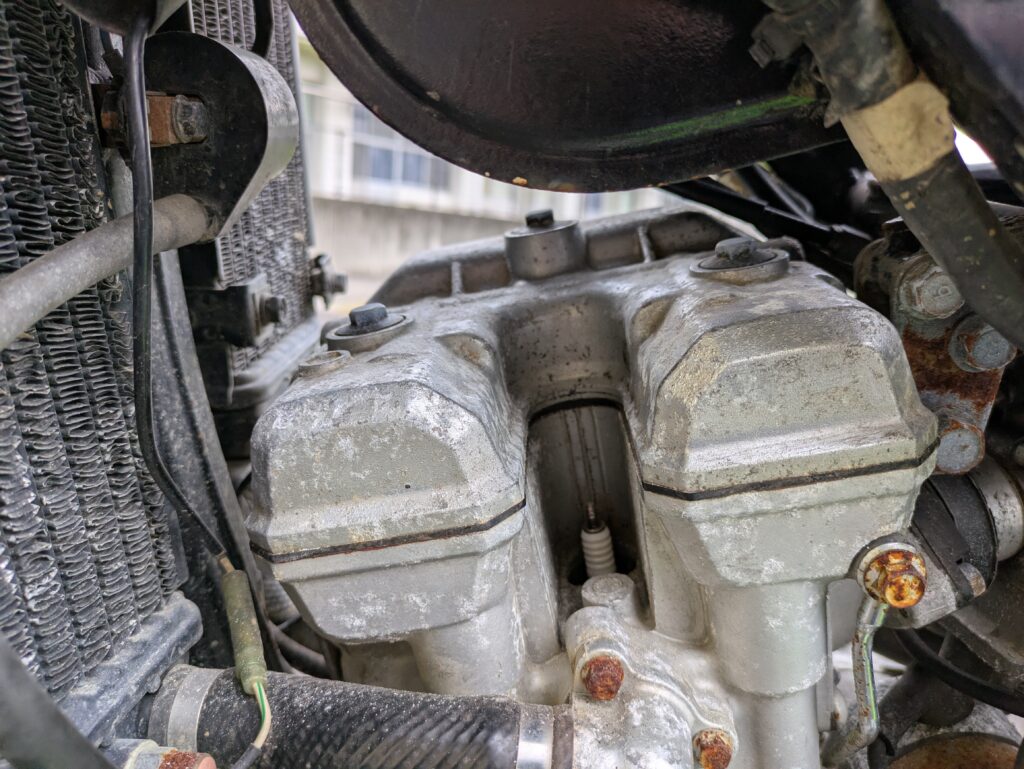KLX250のプラグ周りはクリアランスが少ないので、使える工具が限られています。
