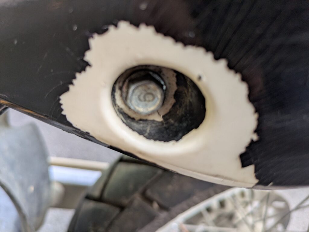 先ほどのシートを外した画像にのっている真ん中のボルトを外します。