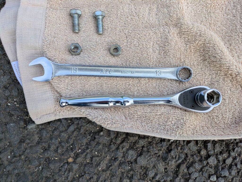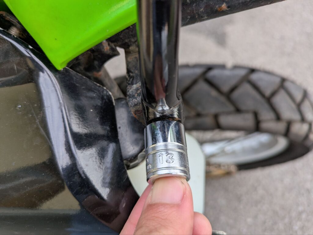 リアキャリアを外すのに必要なものは13mmのソケットだけです。