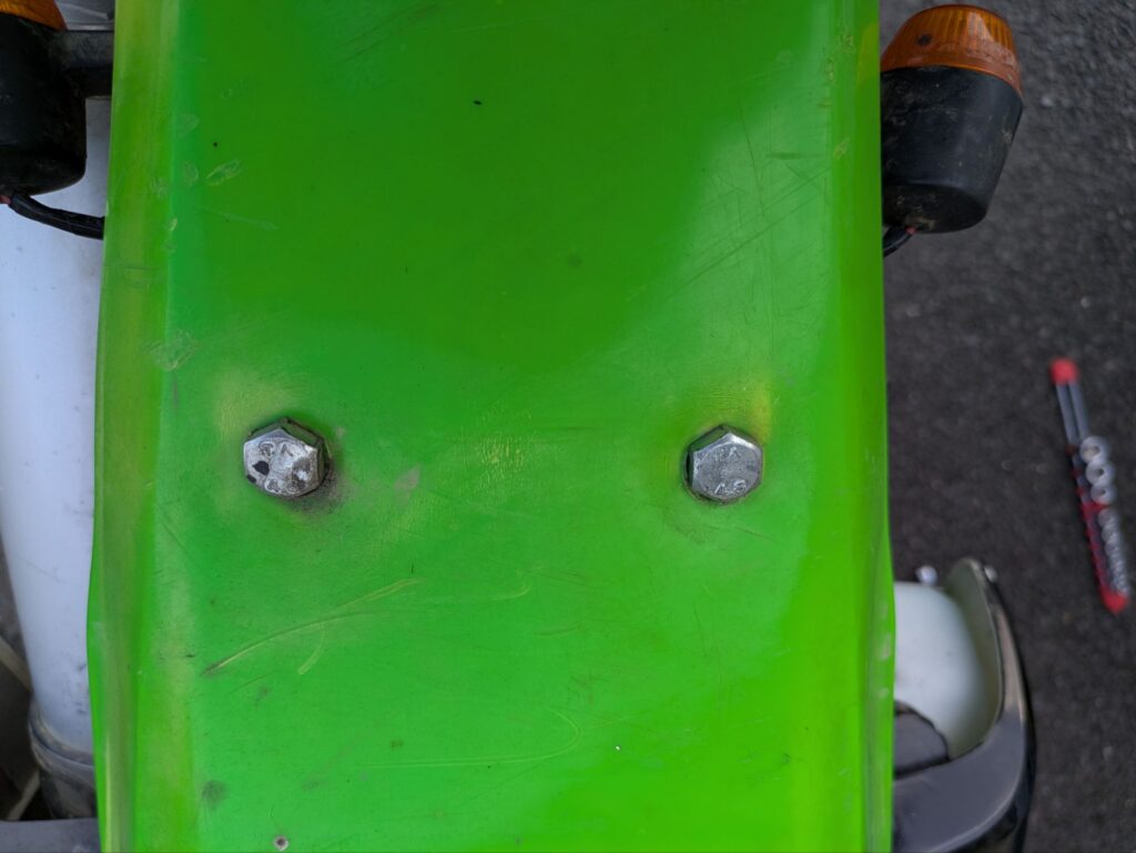 固定する際、リアフェンダーが一部割れていた気もしますが、オフロードバイクなので気にしないことにしました。