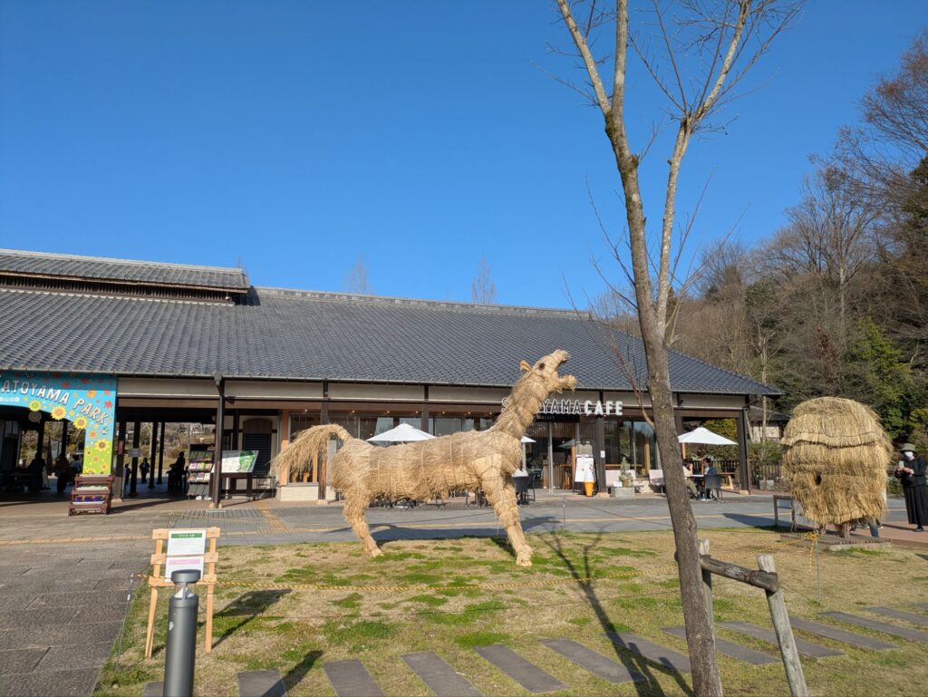 道の駅みのかもと併設している公園は広くて家族連れが多くいました。わらで作った馬と真実の口。四国にもわらで作ったマンモスがいるので、わらはアート材料。都会はラテアートですが、田舎はワラアートです。