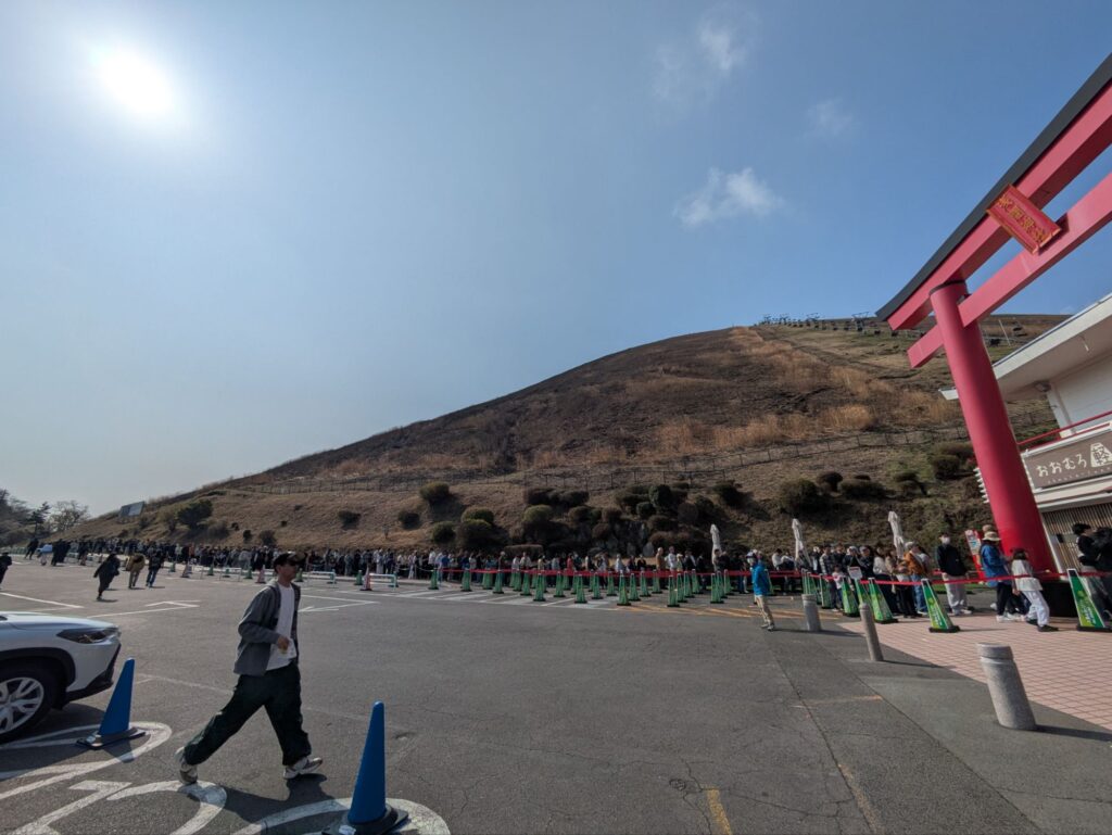 ロープウェイは50分待ちの列。ハイシーズンの伊豆を舐めてましたわ。なのでスルー。