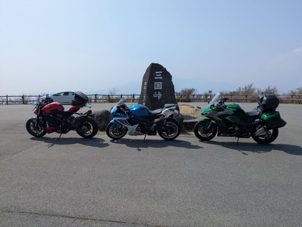 途中の三国峠で写真撮影。改めて写真を見ると、このメンバーでフルパニアninja1000はソロソロキツイのではないか?乗り換え考えたほうがいいのでは?と自問自答が始まる。