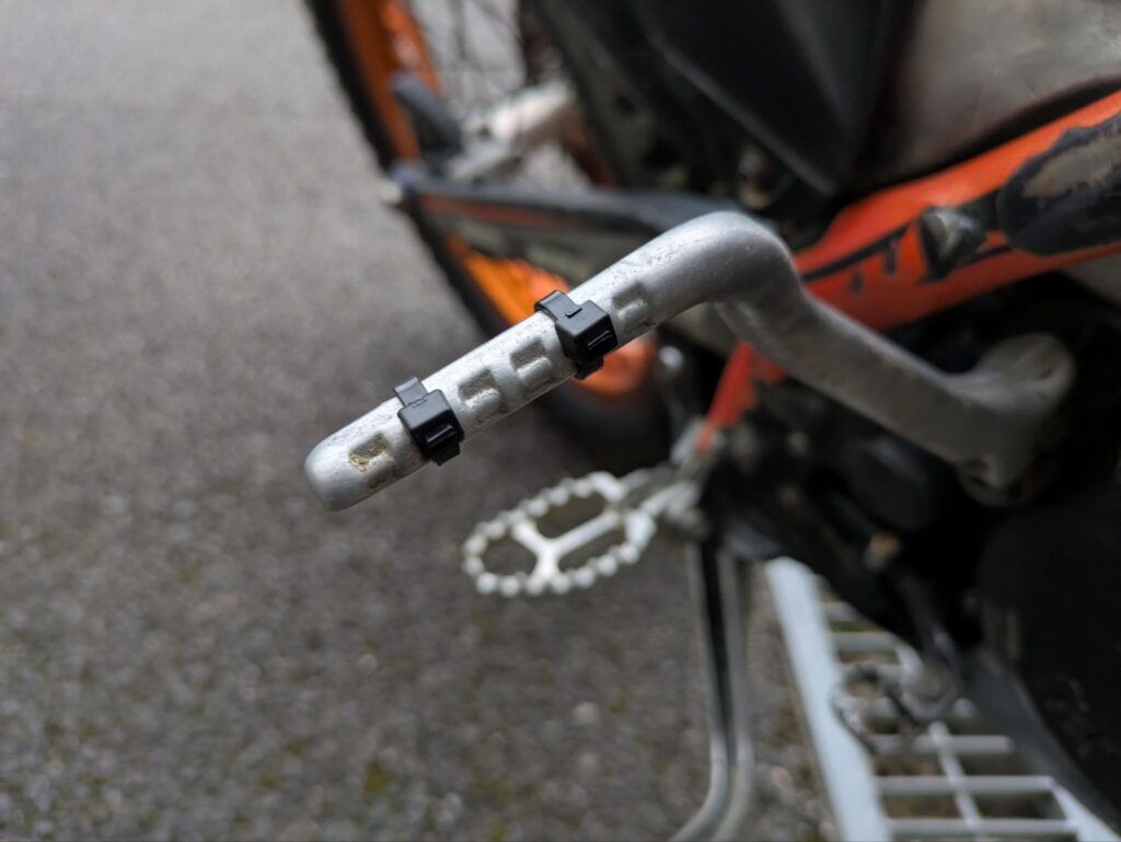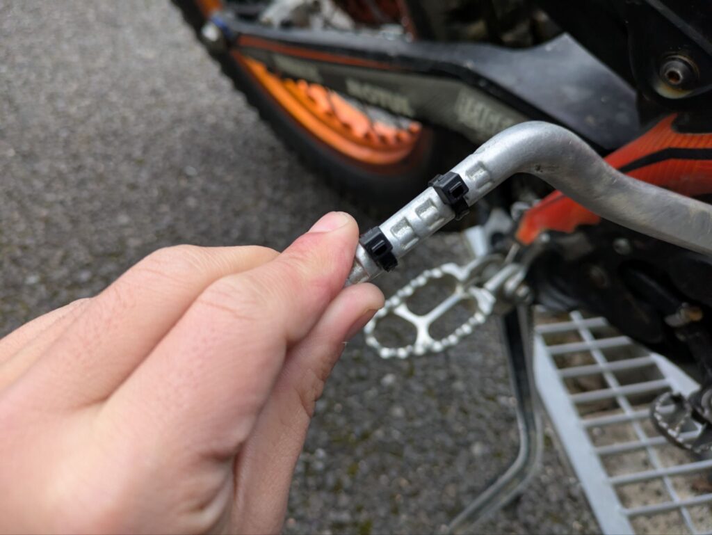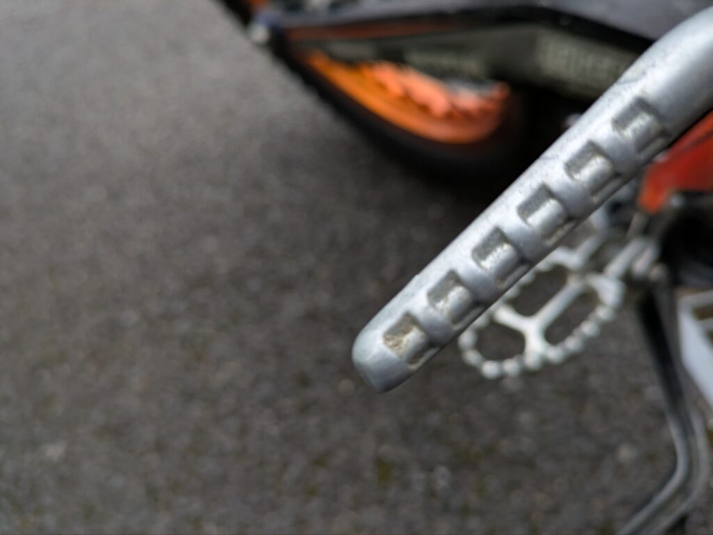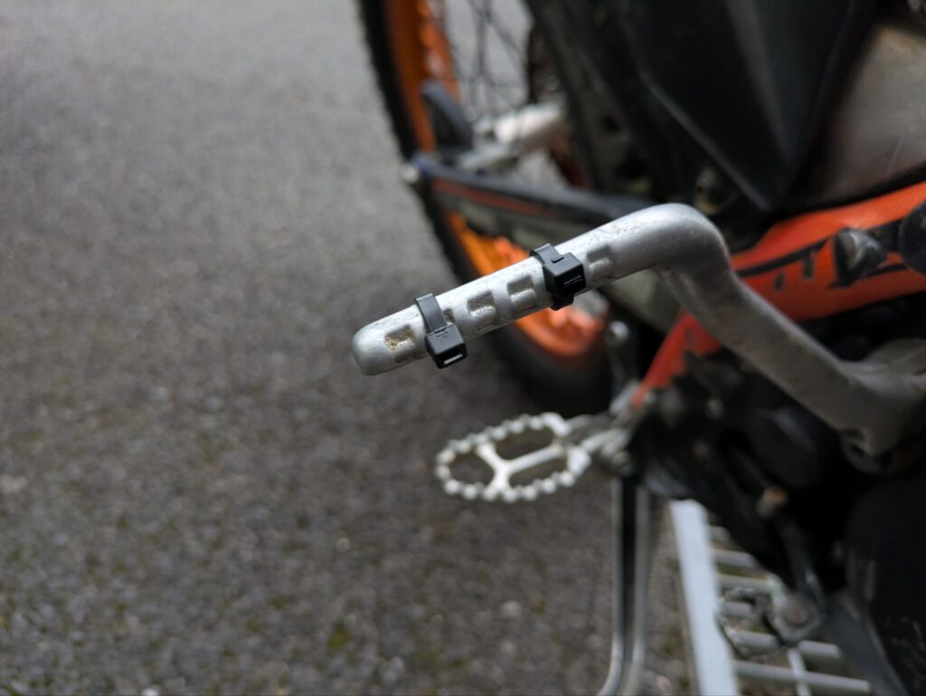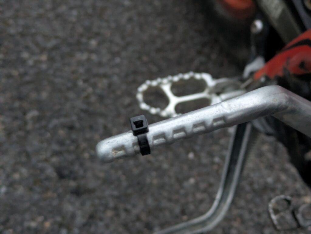 一方で10回ほどキックを繰り返して走行したら、いつの間にかタイラップが1つ取れていました。滑りやすいアルミのキックペダルにタイラップを巻いても、今度はタイラップが滑るみたいです。
